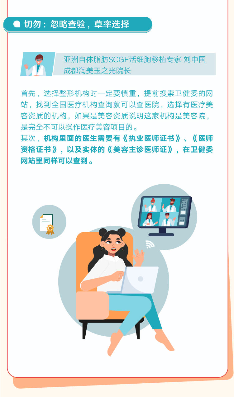 不過值得注意的是,輕醫(yī)美不意味著“輕風(fēng)險(xiǎn)”,求美者在進(jìn)行任何醫(yī)美消費(fèi)前都需要做足功課,慎重選擇。根據(jù)新氧數(shù)據(jù)顏究院發(fā)布的健康醫(yī)美指南,消費(fèi)者可以提前搜索衛(wèi)健委網(wǎng)站,通過“全國醫(yī)療機(jī)構(gòu)查詢”核查醫(yī)院資質(zhì),同時(shí)檢索操作醫(yī)生的《執(zhí)業(yè)醫(yī)師證書》、《醫(yī)師資格證書》等,或者通過醫(yī)美查App進(jìn)行查詢,以保障個(gè)人權(quán)益,安心變美。