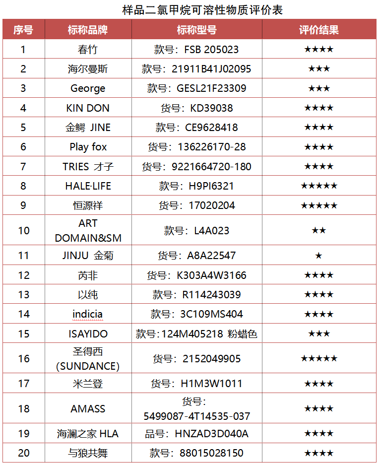 20款樣品的甲醛含量、PH值、可分解致癌芳香胺染料及壬基酚(NP)+辛基酚(OP)檢測結(jié)果均表現(xiàn)優(yōu)異。