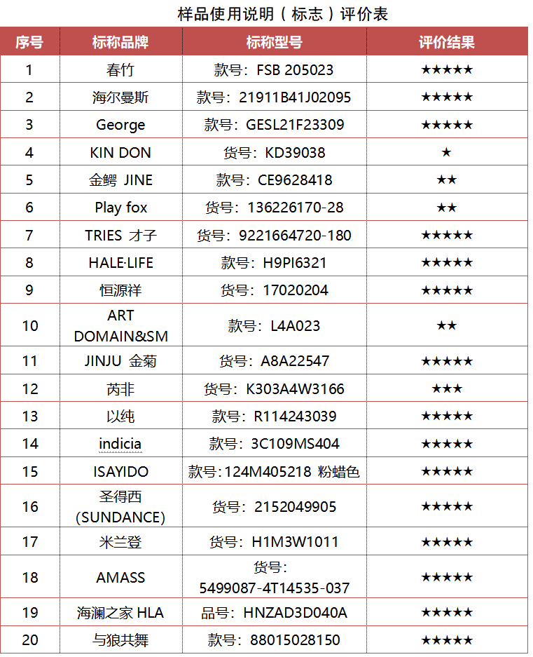 標(biāo)稱品牌“春竹”“KIN DON”“ART DOMAIN&SM”“JINJU金菊”“與狼共舞”5款樣品存在中度起球;