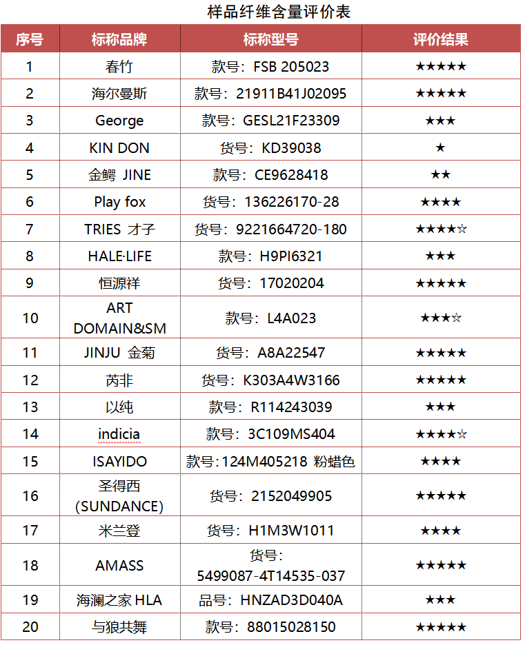 3個(gè)樣品纖維含量與標(biāo)稱不符