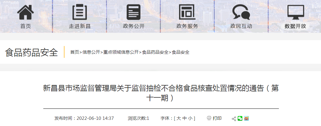 新昌縣市場監(jiān)督管理局關(guān)于監(jiān)督抽檢不合格食品核查處置情況的通告(第十一期)