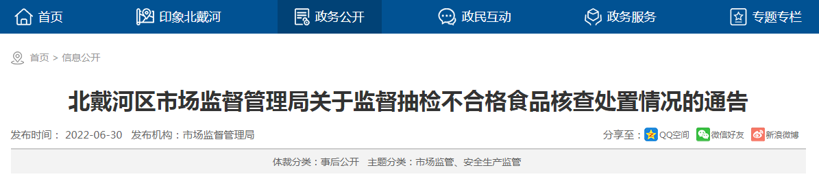 北戴河區(qū)市場監(jiān)督管理局關(guān)于監(jiān)督抽檢不合格食品核查處置情況的通告(家惠).docx