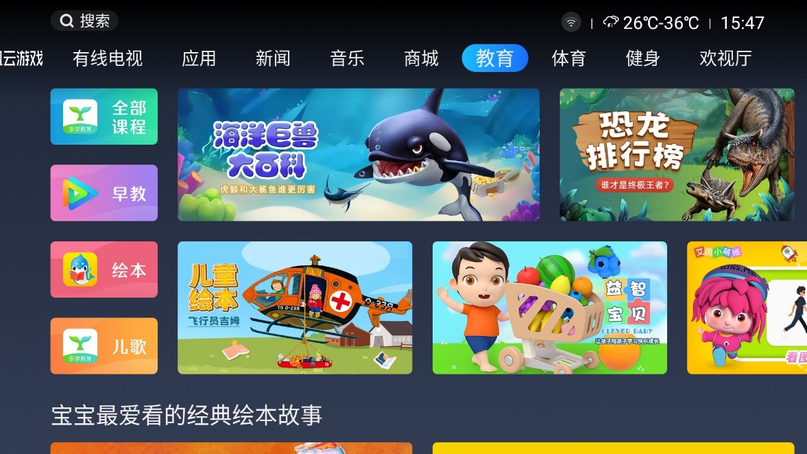 虹魔方還通過(guò)打造專(zhuān)門(mén)的魔方少兒頻道,對(duì)電視大屏上的少兒內(nèi)容進(jìn)行了系統(tǒng)規(guī)劃,比如內(nèi)置海量教育內(nèi)容和益智動(dòng)漫,讓小朋友在觀(guān)看有趣動(dòng)畫(huà)、故事講解的過(guò)程中學(xué)到知識(shí);比如開(kāi)設(shè)學(xué)堂、益智等模塊,家長(zhǎng)可以和小朋友們一同進(jìn)行益智游戲大比拼。魔方少兒采用瀑布流動(dòng)態(tài)海報(bào)設(shè)計(jì),內(nèi)容分類(lèi)齊全,精選、幼教、動(dòng)畫(huà)、故事、英語(yǔ),全面涵蓋少兒內(nèi)容,能滿(mǎn)足家長(zhǎng)對(duì)少兒資源的剛性需求。
