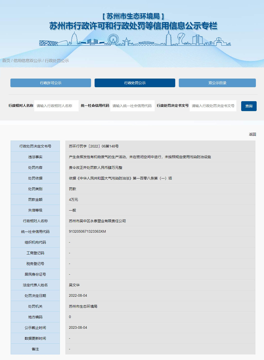 中國(guó)質(zhì)量新聞網(wǎng)訊 近日,江蘇省蘇州市生態(tài)環(huán)境局對(duì)蘇州市吳中區(qū)永泰塑業(yè)有限責(zé)任公司作出行政處罰(行政處罰決定文書(shū)號(hào):蘇環(huán)行罰字〔2022〕06第148號(hào))。