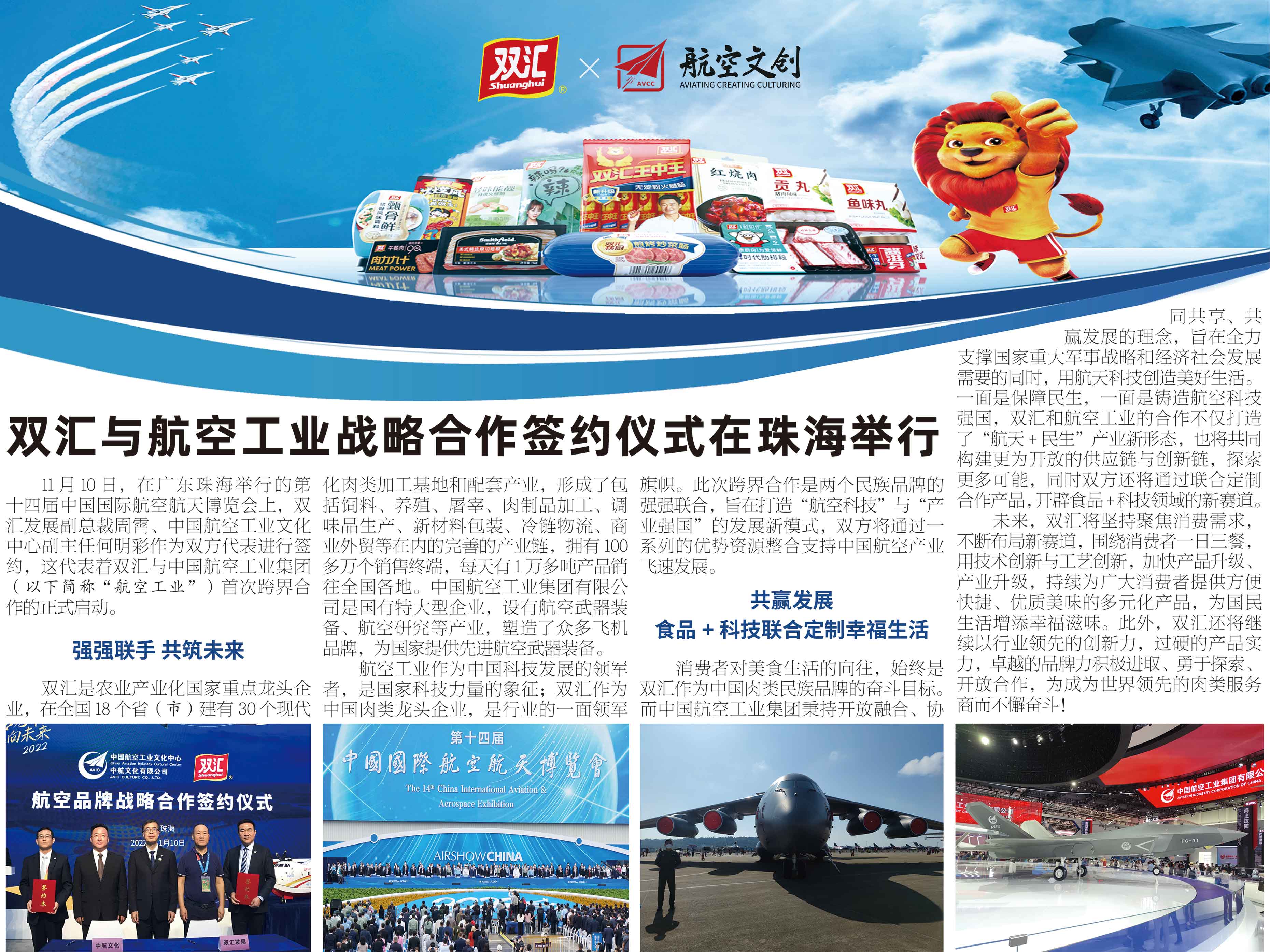 雙匯與航空工業(yè)戰(zhàn)略合作簽約儀式在珠海舉行