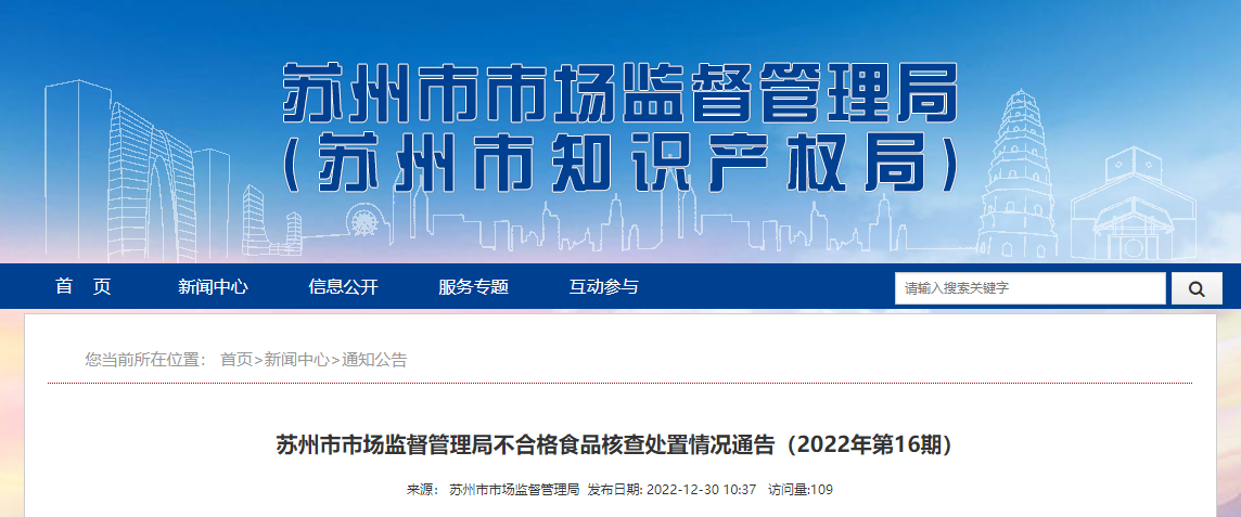 蘇州市市場監(jiān)督管理局不合格食品核查處置情況通告(2022年第16期)