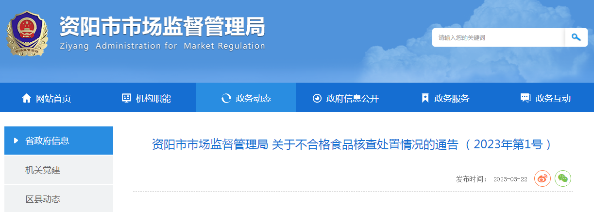 資陽(yáng)市市場(chǎng)監(jiān)督管理局關(guān)于不合格食品核查處置情況的通告(2023年第1號(hào))