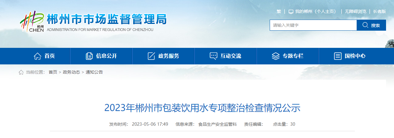 中國(guó)質(zhì)量新聞網(wǎng)訊 據(jù)湖南省郴州市市場(chǎng)監(jiān)管局網(wǎng)站消息,根據(jù)湖南省市場(chǎng)監(jiān)督管理局辦公室《關(guān)于開(kāi)展包裝飲用水銅綠假單胞菌不合格問(wèn)題專項(xiàng)整治的通知》(湘市監(jiān)辦函〔2023〕52 號(hào))文件要求,該局于2023年3月對(duì)轄區(qū)包裝飲用水食品生產(chǎn)企業(yè)開(kāi)展專項(xiàng)檢查。現(xiàn)將檢查結(jié)果公示如下: