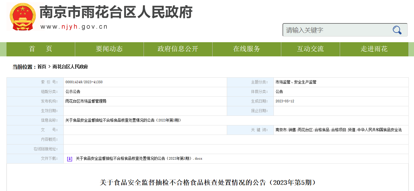 2023年,南京市市場監(jiān)督管理局對我區(qū)食品進(jìn)行抽檢,現(xiàn)按相關(guān)要求,將我局對相關(guān)不合格食品生產(chǎn)經(jīng)營者的處置情況公布如下: