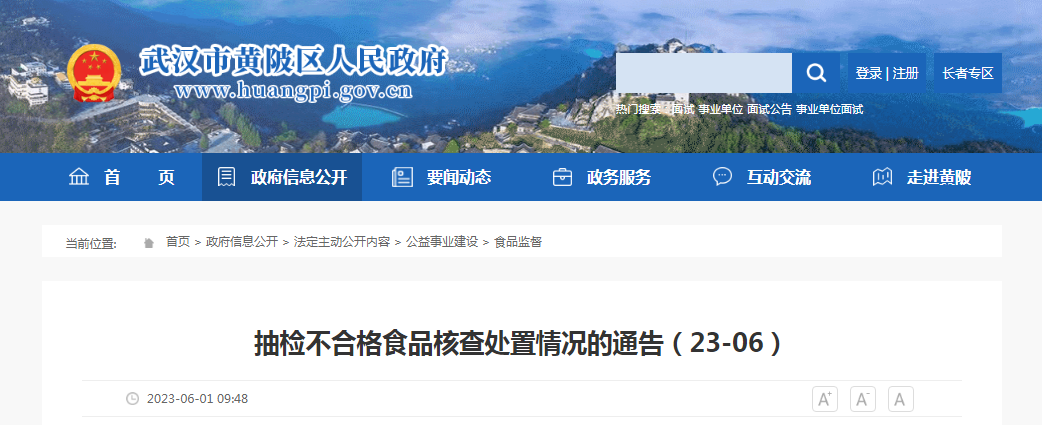 中國質量新聞網訊 近日,武漢市黃陂區(qū)市場監(jiān)督管理局發(fā)布抽檢不合格食品核查處置情況的通告(23-06)。