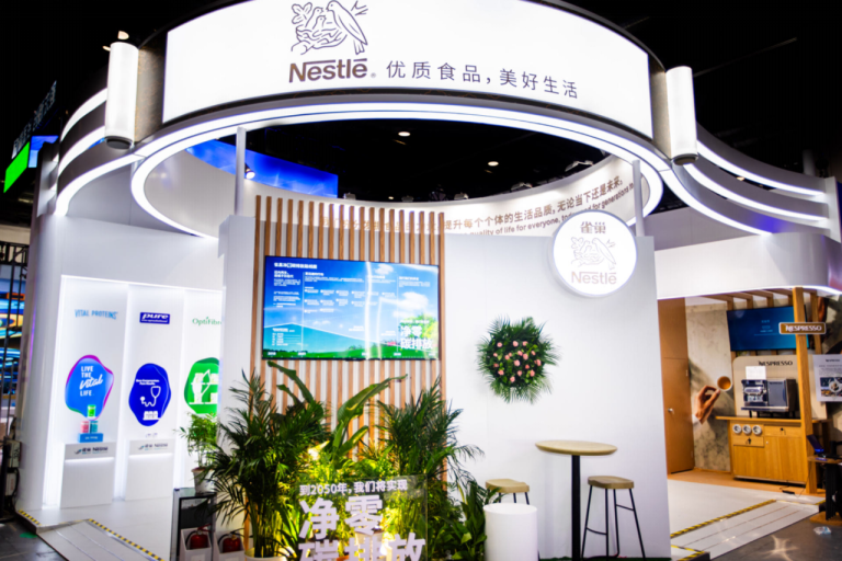 在為消費者創(chuàng)造優(yōu)質(zhì)產(chǎn)品的同時,雀巢也在用企業(yè)的力量構(gòu)筑可持續(xù)的未來。在雀巢的可持續(xù)發(fā)展區(qū),“凈零碳排放路線圖”清晰展示了雀巢的可持續(xù)發(fā)展舉措。雀巢展臺上,那些用回收材料制作的限量版桌椅、滑板、運動鞋等,具象化地向消費者展現(xiàn)了可持續(xù)發(fā)展的生活方式。今年3月雀巢發(fā)布的《創(chuàng)造共享價值與可持續(xù)發(fā)展報告》中指出,在充滿挑戰(zhàn)的2022年,雀巢的業(yè)績表現(xiàn)強勁,并在業(yè)務持續(xù)增長的同時,進一步將溫室氣體排放量降至2018年的基線以下。值得一提的是,“雀巢凈零碳排放之旅”也被本屆大會評為“2023年服貿(mào)會綠色發(fā)展服務示范案例”。