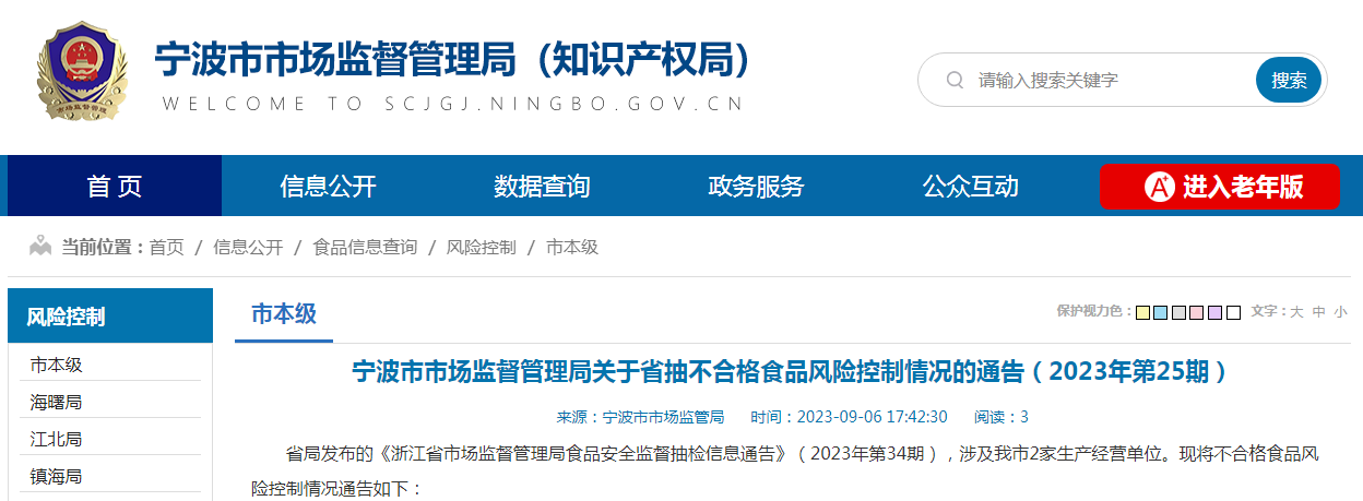 寧波市市場監(jiān)督管理局關于省抽不合格食品風險控制情況的通告(2023年第25期)