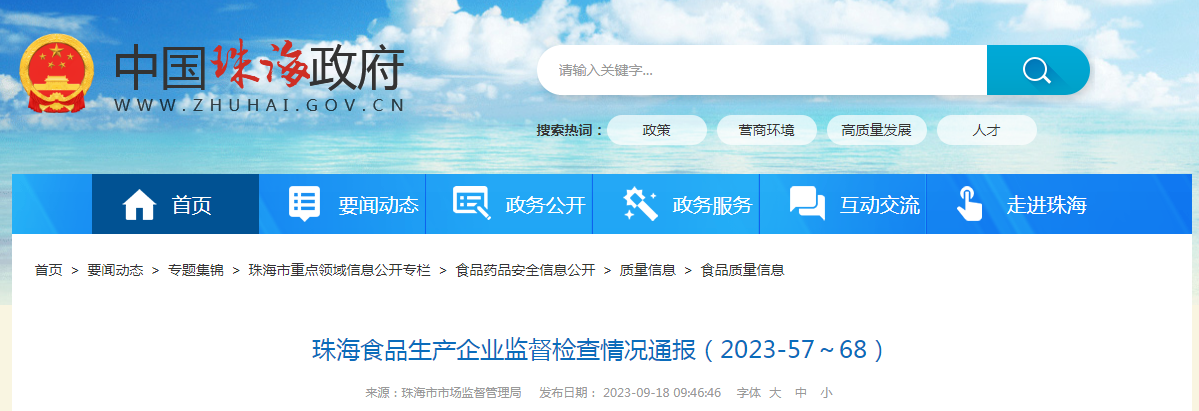 珠海市食品生產(chǎn)企業(yè)監(jiān)督檢查情況通報(bào)(2023-62)