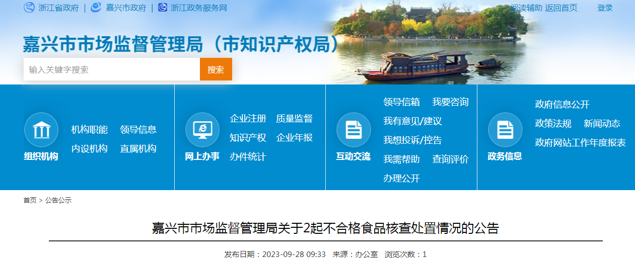 嘉興市市場監(jiān)督管理局關于2起不合格食品核查處置情況的公告