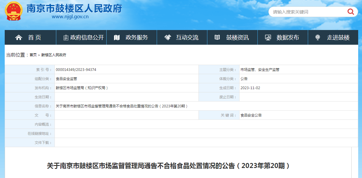關(guān)于南京市鼓樓區(qū)市場(chǎng)監(jiān)督管理局通告不合格食品處置情況的公告(2023年第20期)