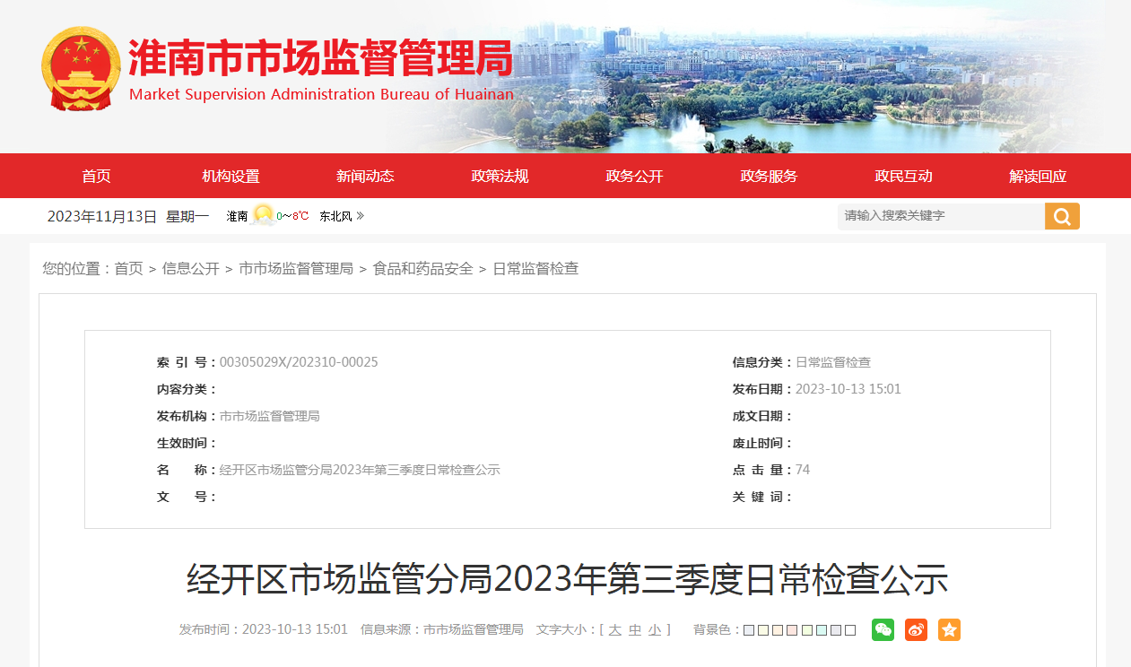 經(jīng)開區(qū)市場監(jiān)管分局2023年第三季度日常檢查公示