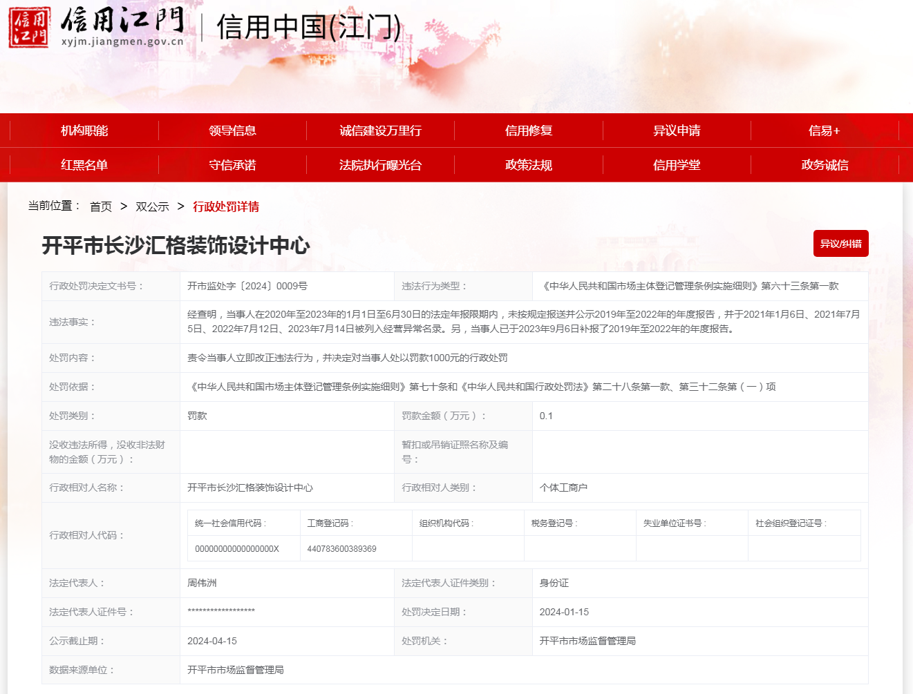 【廣東】開平市長(zhǎng)沙匯格裝飾設(shè)計(jì)中心未按規(guī)定報(bào)送年度報(bào)告案