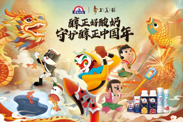 除此以外,光明乳業(yè)還與上美影眾多知名IP開展深度合作。龍年新春,莫斯利安攜手上美影《大鬧天宮》《黑貓警長》《葫蘆兄弟》《哪吒鬧?!贰堆┖⒆印肺宕驣P,以“醇正好酸奶 守護醇正中國年”為主題,創(chuàng)新新產(chǎn)品、制造新內(nèi)容、策劃新體驗、布局全渠道,為廣大消費者帶來一場好吃、好看、好玩的盛宴。本次聯(lián)名不僅將經(jīng)典形象搬上酸奶瓶,還推出了隱藏款包裝,為消費者帶來驚喜。