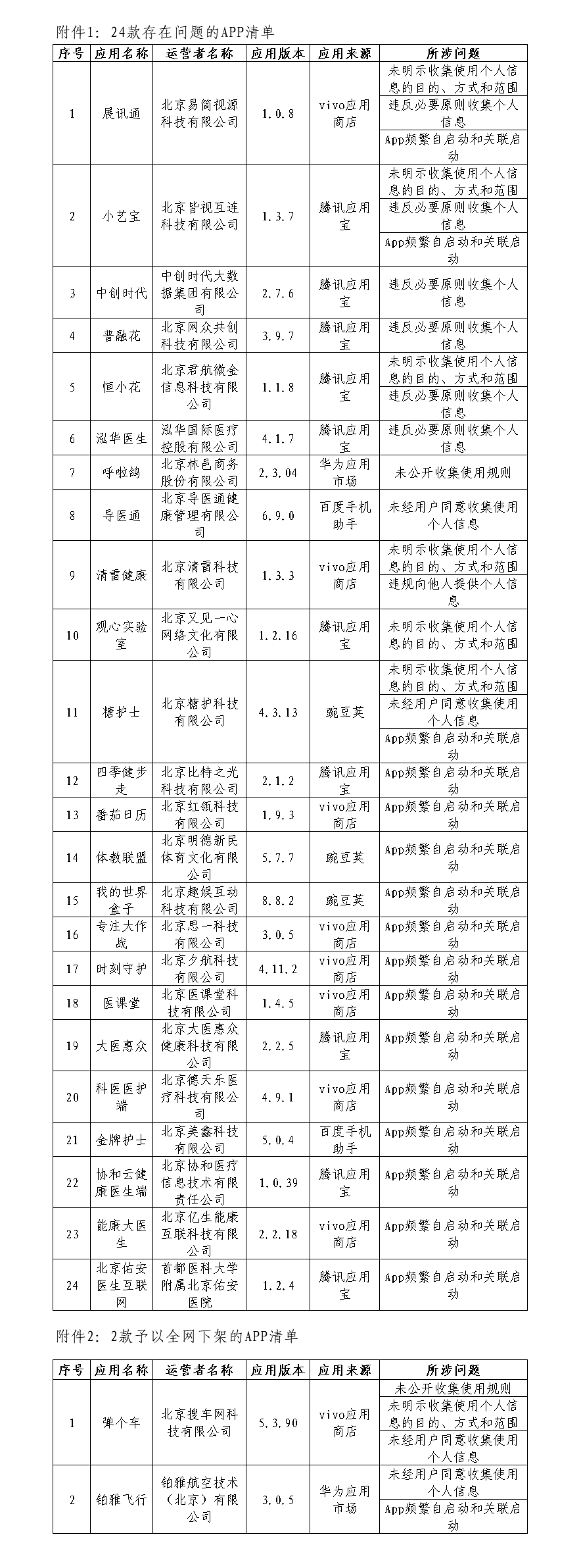 附件1:24款存在問(wèn)題的APP清單