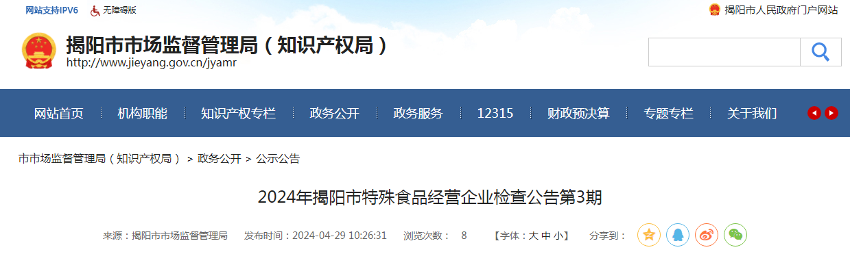 2024年揭陽(yáng)市特殊食品經(jīng)營(yíng)企業(yè)檢查公告第3期