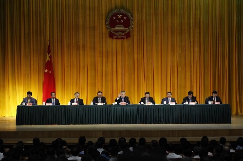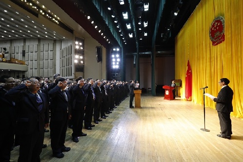 會議舉行了憲法宣誓儀式。下午3時30分,在張茅的監(jiān)誓下,馬正其宣布宣誓儀式開始??偩謾C關138名新任司局級干部集體列隊,面向國徽、國旗,同唱中華人民共和國國歌。領誓人撫按憲法,宣讀誓言,其他宣誓人列隊站立,跟誦誓詞。