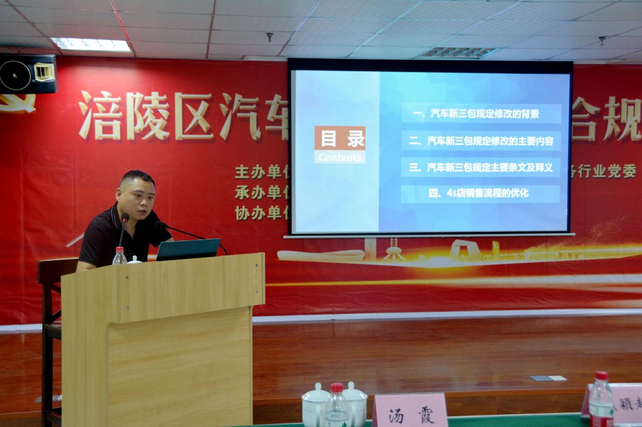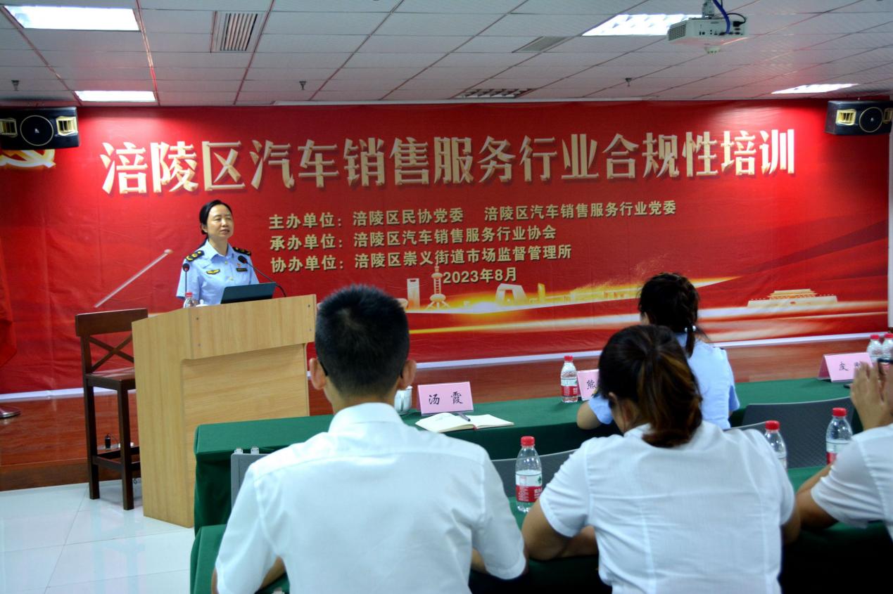 “同志們,今天我們以黨組織的名義舉行這次合規(guī)性培訓(xùn),旨在不斷豐富黨員職工的法律知識,不斷增強黨員職工的守法經(jīng)營意識,讓黨員職工的先鋒模范作用得到進(jìn)一步發(fā)揮。”這是涪陵區(qū)汽車銷售服務(wù)行業(yè)黨委書記、涪陵區(qū)崇義街道市場監(jiān)管所副所長湯霞的開場白。