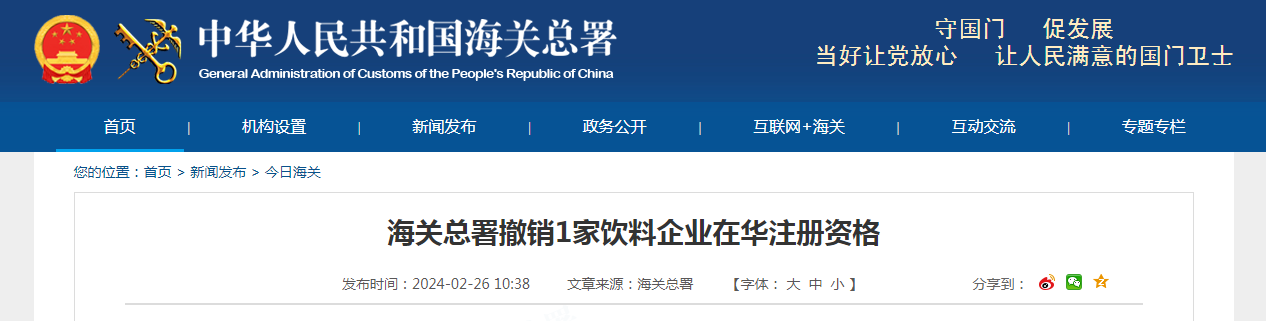 經(jīng)核實,在華注冊編號為CUSA24092203180057的美國飲料生產(chǎn)企業(yè)JERRY&SONS PHARMACEUTICAL INC在申請注冊時提供了虛假材料。海關(guān)總署根據(jù)《中華人民共和國進口食品境外生產(chǎn)企業(yè)注冊管理規(guī)定》有關(guān)規(guī)定已撤銷該企業(yè)在華注冊資格。海關(guān)未發(fā)現(xiàn)上述企業(yè)的產(chǎn)品報關(guān)記錄。
