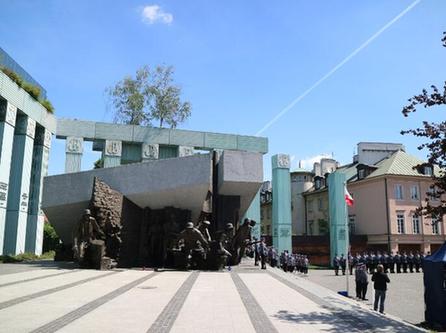 在華沙起義紀(jì)念碑廣場(chǎng),我們看到當(dāng)?shù)卣谂e行的一個(gè)紀(jì)念儀式。