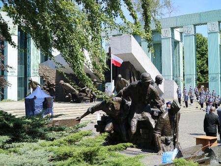 華沙起義是第二次世界大戰(zhàn)中波蘭地下軍反抗德國(guó)占領(lǐng)軍的戰(zhàn)役。這場(chǎng)戰(zhàn)役是在1944年8月1日開(kāi)始的。當(dāng)時(shí),5萬(wàn)名波蘭地下軍采用了游擊戰(zhàn)對(duì)抗2萬(wàn)5千名德軍,整個(gè)起義持續(xù)了63天,最終以失敗結(jié)束。華沙起義紀(jì)念碑,是一組大型青銅雕塑,是從地下掩體沖出街壘的起義士兵、工人,以及掩護(hù)婦孺的戰(zhàn)士、為起義者祈禱的神職人員組成,形象生動(dòng),情節(jié)感人,氣勢(shì)恢宏。