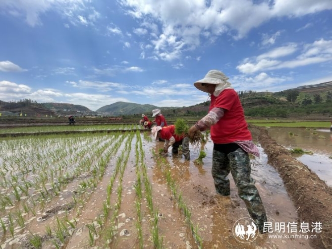 昆明信息港訊記者段佳琪 “這里水稻要插密一點,當中可以稀一點,這樣線條比較明顯……”5月10日,在昆明市富民縣的散旦鎮(zhèn)沙營村,農戶們正忙著插種水稻,和以往不同的是,這次的水稻不再只是簡簡單單的綠色,其中還有黃色、紫色、白色等多種創(chuàng)意水稻品種。