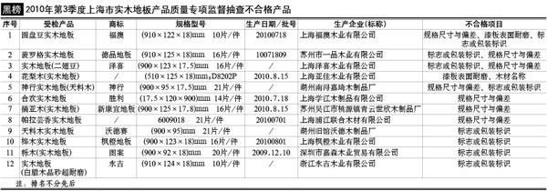主要問題:規(guī)格尺寸與偏差、漆板表面耐磨、標(biāo)志或包裝標(biāo)識、木材名稱不合格