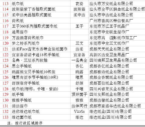 抽查概況:對紙巾紙(含濕巾)產(chǎn)品的細(xì)菌菌落總數(shù)、真菌菌落總數(shù)、大腸菌群、綠膿桿菌、金黃色葡萄球菌、溶血性鏈球菌、亮度(白度)、橫向吸液高度、橫向抗張指數(shù)、縱向抗張指數(shù)、橫向濕抗張強度、柔軟度、含液量等13個項目進行了檢驗。本次抽查,有17種產(chǎn)品不合格