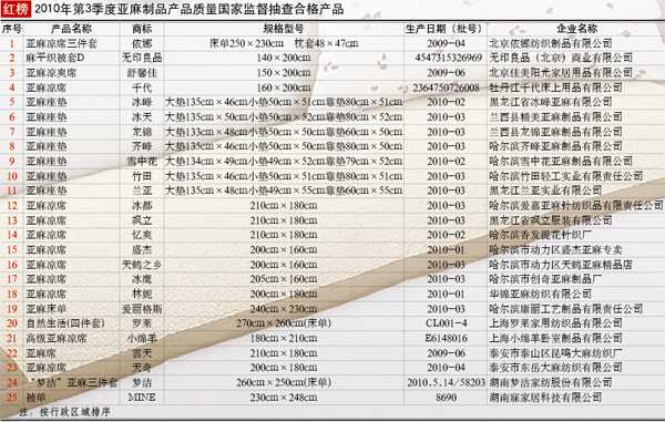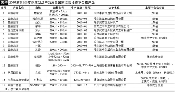 抽查范圍:北京、天津、黑龍江、上海、山東、湖南、廣東等7個省、直轄市40家企業(yè)生產(chǎn)的40種產(chǎn)品,包括:32種亞麻床上用品和8種亞麻汽車坐墊產(chǎn)品