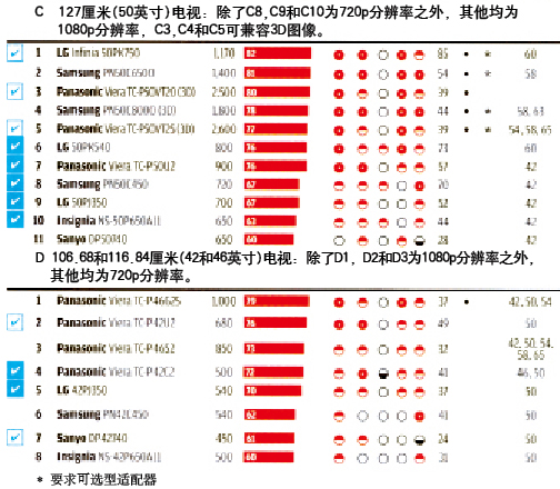 此次測評的眾多等離子電視性能良好,值得推薦。但暫未推薦得分較高的機型,因為價格昂貴,暫且不值得考慮購買。以下為CR強力推薦和一些值得推薦的品牌機型。若消費者想購買比測試機型屏幕較大或較小的機型,那么可參考該測評中“其他尺寸”這一欄的信息。測評中發(fā)現(xiàn)同一系列機型的性能通常是相似的。
