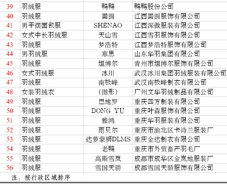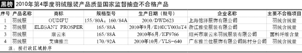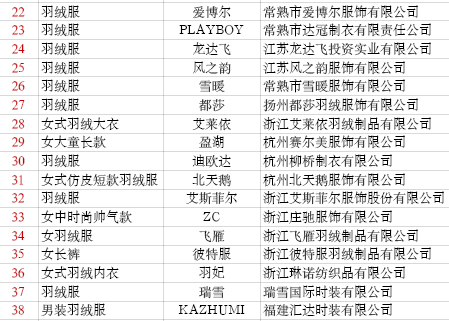 主要問題:羽絨含絨量、面料纖維含量等不合格