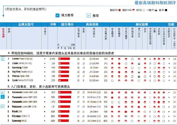 大多數(shù)機(jī)型整體性能良好,畫質(zhì)得分不可與即拍型數(shù)碼相機(jī)的得分相比,因為類型不同。