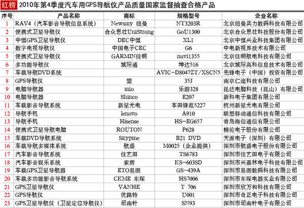 抽查概況:對汽車GPS導航儀產(chǎn)品的定位精度、位置更新率、捕獲、效率、車輛定位及地圖匹配功能、地圖顯示功能、目標檢索功能、路線計算功能、路線引導功能、地圖數(shù)據(jù)庫、接口、高溫工作試驗、低溫工作試驗、電源端子騷擾電壓、輻射騷擾等15個項目進行了檢驗。本次抽查,有8種產(chǎn)品不合格