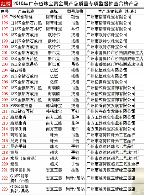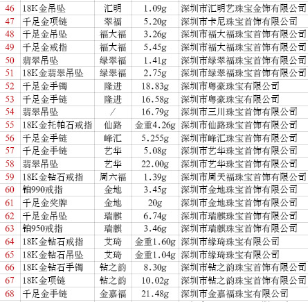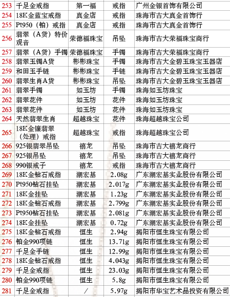 抽查范圍:廣東省163家企業(yè)生產(chǎn)的珠寶貴金屬產(chǎn)品375批次