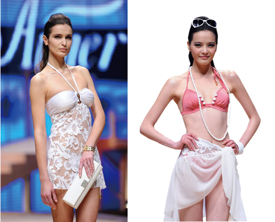 愛慕設(shè)計師劉敏告訴記者,3場泳裝發(fā)布通過情感上的遞進(jìn),表達(dá)了女人與泳衣從相識到相知最后相戀的關(guān)系。在愛慕將泳裝第1次推向時裝周時,采用較常規(guī)、謹(jǐn)慎的方式,第2次則開始在設(shè)計上采用歡愉的個性,同時通過具有趣味性的走秀過程更增添了一股歡快的情緒。而第3場發(fā)布的新品除款式外,情感達(dá)到高潮,不僅將T臺布置成海灘實景,還利用4個系列、4個故事來演繹女人與泳衣相戀的熱情。