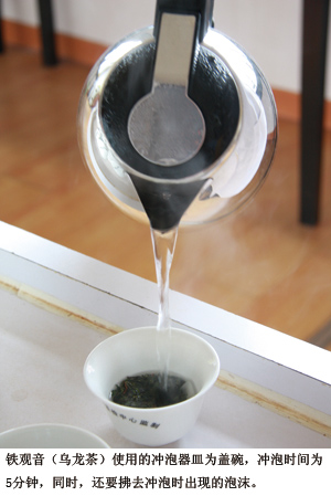 倒入標(biāo)準(zhǔn)器皿后,開始茶葉沖泡階段。