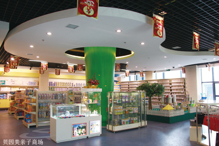 在大廳最右側(cè),是貝因美頗具特色的親子商場(chǎng),里面不僅有米粉、奶粉、嬰童濕紙巾等貝因美產(chǎn)品,還有其他兒童玩具、服裝等知名品牌產(chǎn)品。記者意外發(fā)現(xiàn),在親子商場(chǎng)天花板上有三個(gè)大圓圈,原來它象征著一家三口,代表親子關(guān)系,從這個(gè)細(xì)節(jié)可以看出,嬰童行業(yè)的特點(diǎn)和貝因美倡導(dǎo)的親子文化特征。