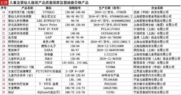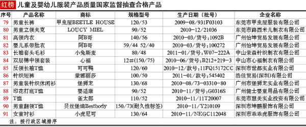 抽查范圍:北京、天津、河北、上海、江蘇、浙江、福建、廣東等8個省、直轄市100家企業(yè)生產(chǎn)的105種產(chǎn)品,包括26種嬰幼兒服裝和79種兒童服裝