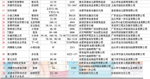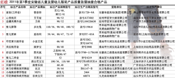 2011年第1季度,安徽省質(zhì)量技監(jiān)局組織對(duì)兒童及嬰幼兒服裝產(chǎn)品進(jìn)行了省級(jí)監(jiān)督抽查。