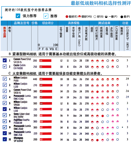 若必須要購買帶有取景器的低端機(jī)型,那么可選擇包括電子取景器在內(nèi)的3款大變焦數(shù)碼相機(jī),分別是:尼康Coolpix P100、佳能PowerShot SX30 IS以及松下Lumix DMC-FZ40。