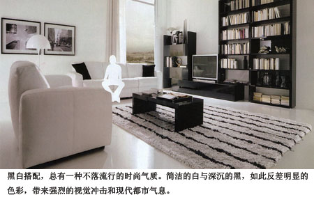 黑與白的搭配一直以來被認作是經(jīng)典,也正因為純粹,所以在應(yīng)用上無需大費筆墨,即能自成一格。用黑白兩種顏色制成的家具、配飾,不僅讓人感到視覺沖擊力強,而且還給原本和諧的家居氛圍帶來現(xiàn)代摩登氣息。