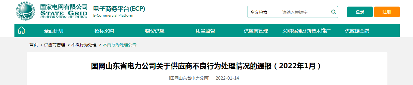 中國質(zhì)量新聞網(wǎng)訊(張蒙)近日,國家電網(wǎng)電子商務(wù)平臺發(fā)布通報,國網(wǎng)山東電力有限公司對出現(xiàn)重大產(chǎn)品質(zhì)量問題、履約不誠信等問題的6家供應(yīng)商進行了處理,并公布相應(yīng)的處理措施。
