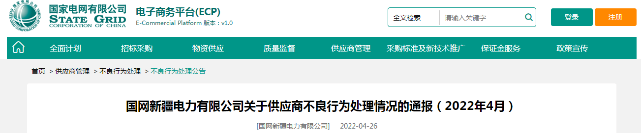 國網(wǎng)新疆電力有限公司關于供應商不良行為處理情況的通報 編號:2022-2 | |||
