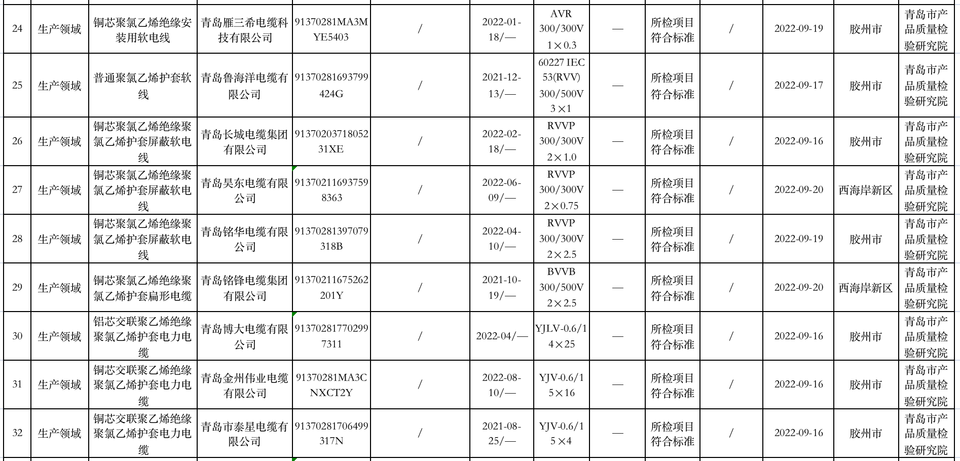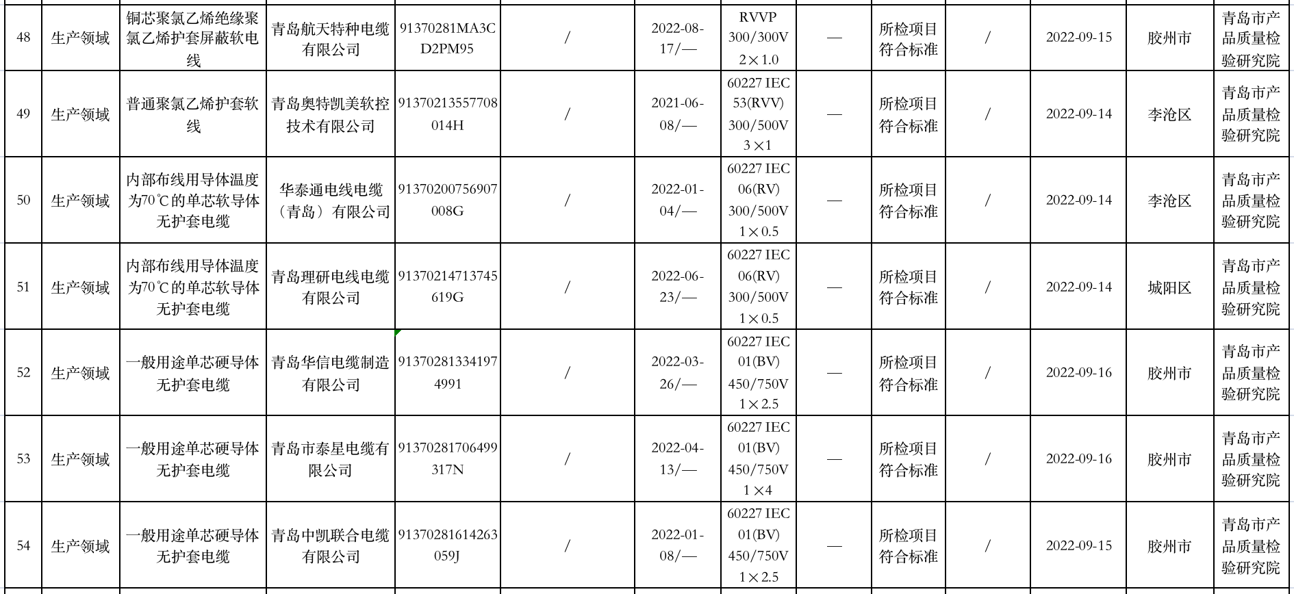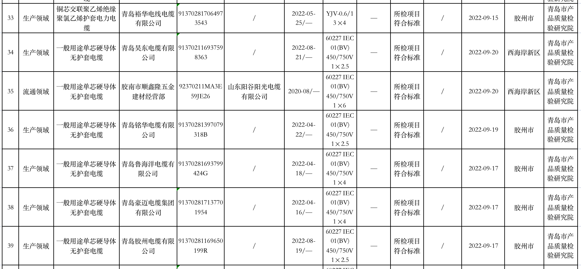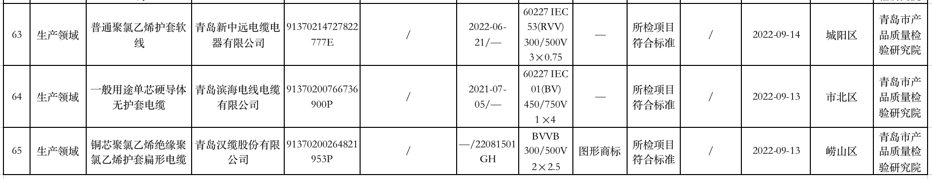 中國(guó)質(zhì)量新聞網(wǎng)訊(明曉眢)為了加強(qiáng)工業(yè)產(chǎn)品質(zhì)量監(jiān)督,青島市市場(chǎng)監(jiān)督管理局于2022年12月份完成了電線電線產(chǎn)品質(zhì)量市專項(xiàng)監(jiān)督抽查工作,共對(duì)63家企業(yè)經(jīng)營(yíng)的65批次電線電纜產(chǎn)品質(zhì)量進(jìn)行了監(jiān)督抽查。2022年12月2日,青島市市場(chǎng)監(jiān)督管理局公布2022年電線電纜產(chǎn)品質(zhì)量市專項(xiàng)監(jiān)督抽查結(jié)果?,F(xiàn)將抽查情況通報(bào)如下: