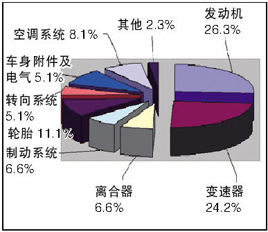 統(tǒng)計(jì)顯示,2008年二季度用戶對(duì)汽車質(zhì)量的投訴在總投訴量中仍占多數(shù),相比上個(gè)季度,產(chǎn)品質(zhì)量問題的投訴比率呈上升趨勢(shì)。具體比率為,質(zhì)量問題投訴68.3%,服務(wù)質(zhì)量投訴31.7%。其中對(duì)核心部件———發(fā)動(dòng)機(jī)、變速器、離合器的投訴比例達(dá)到質(zhì)量總投訴的近60%,比以往有所上升。其中,針對(duì)發(fā)動(dòng)機(jī)的投訴占26.3%;變速器占24.2%;離合器占6.6%。變速箱的問題主要表現(xiàn)在掛擋混亂、掛擋困難等方面;輪胎問題主要是購車不久便出現(xiàn)鼓泡現(xiàn)象;車身附件、前后橋及懸架系統(tǒng)、制動(dòng)系統(tǒng)的投訴比率比以往明顯減少。而在這些引發(fā)消費(fèi)者投訴的質(zhì)量問題中,存在安全隱患的占到12.4%,車輛自身生產(chǎn)缺陷占15.2%,自燃占1.5%,都比今年一季度有所上升。且這些問題多集中發(fā)生在市場(chǎng)保有量較大的一些主流車型上,并且合資廠家汽車產(chǎn)品取代了自主品牌產(chǎn)品,成為二季度被投訴的主要車型對(duì)象。
