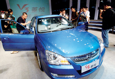 8月28日,東南汽車(chē)工業(yè)有限公司高起點(diǎn)自主研發(fā)的東南V3菱悅轎車(chē)正式下線典禮在福州東南汽車(chē)城舉行。圖為擁有與日本三菱、美國(guó)克萊斯勒、道奇三大國(guó)際品牌共同基準(zhǔn)的精良品質(zhì)的東南V3菱悅轎車(chē)受到眾多媒體記者的關(guān)注。劉可耕 攝